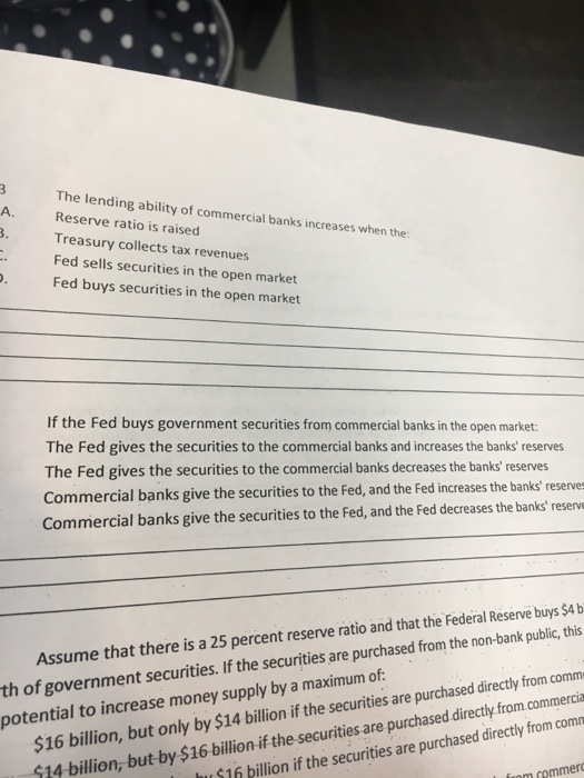 The money supply will contract. The money supply 3. If the Federal Reserve System buys government securities from commercial banks and the public.