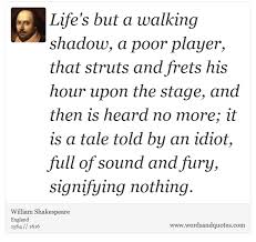 That struts and frets his hour upon the stage And then is heard no more.